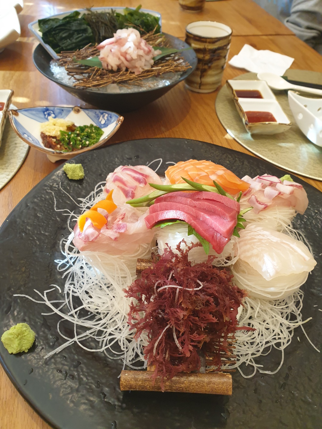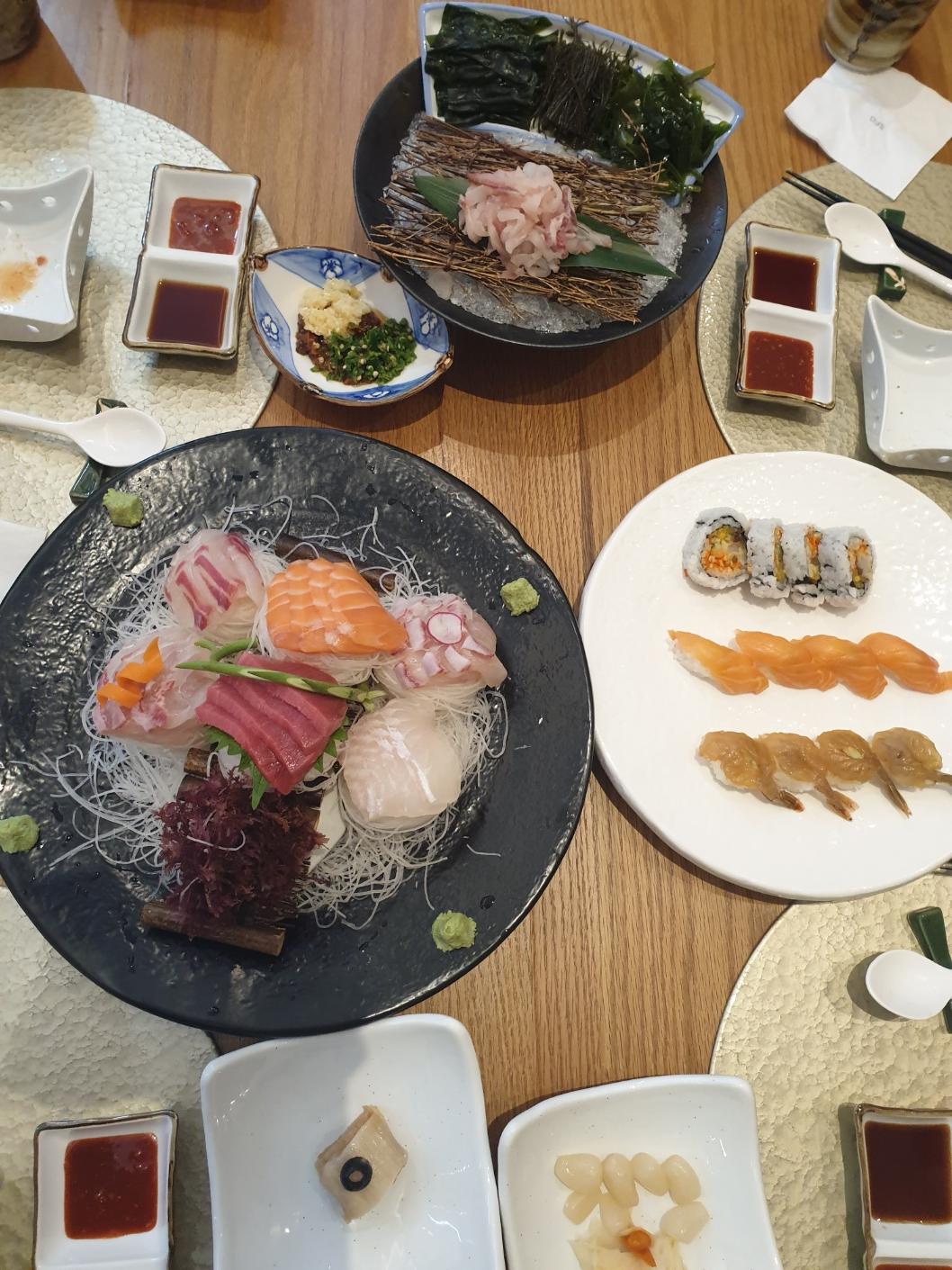 다음 요리가 메인 요리였습니다. 메인 요린는 다채로운 횟감이 나왔습니다. 광어, 연어, 참치 등등 일반적인 횟집에서 나오는 특별한 종류는 아니었지만 신선도는 괜찮았습니다.
