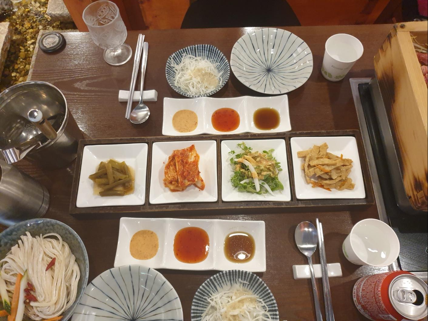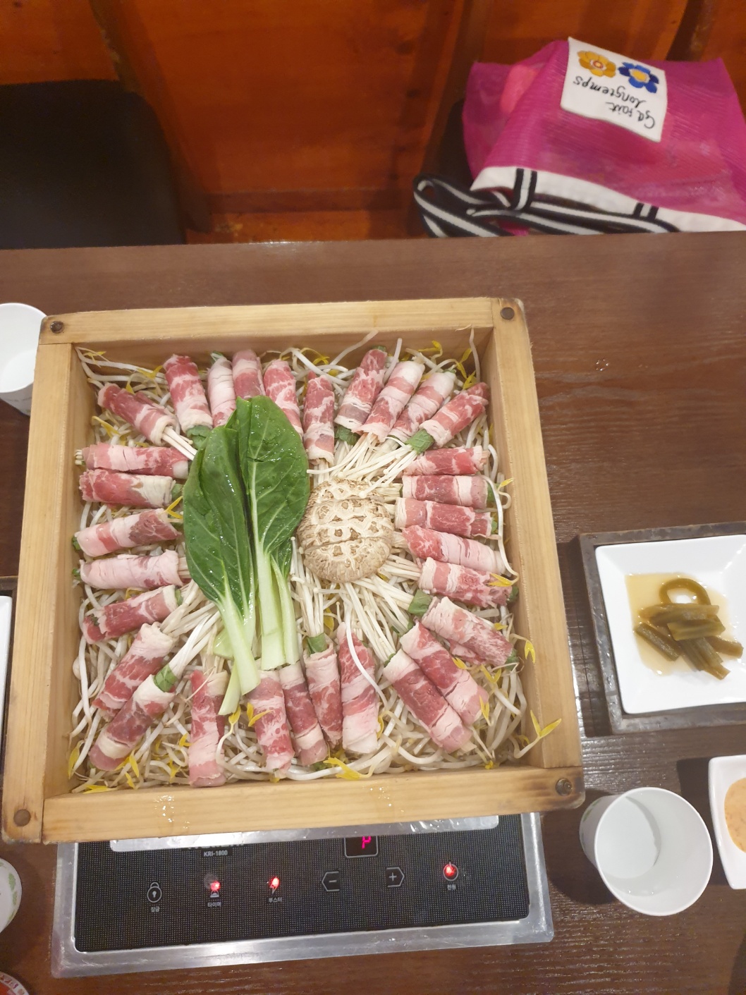 편백나무 찜 샤브샤브는 정말 특별한 경험이었어요. 음식이 나오기 전부터 이미 그 향기가 식욕을 돋우죠. 상에 올라온 샤브샤브는 한 입 먹을 때마다 깊고 고소한 맛이 입안을 가득 채우는데, 그 맛의 비결은 바로 신선한 재료와 편백나무의 향이 함께 어우러져 있기 때문이에요.