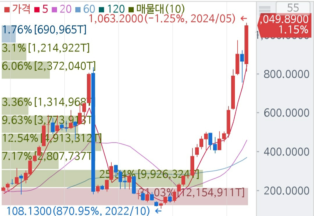 엔비디아는 단순한 그래픽 카드 회사를 넘어 인공지능(AI), 빅데이터, 메타버스 등 다양한 분야에서 성장 가능성을 보여주고 있습니다. 특히, 최근 출시한 차세대 AI 칩인 '호퍼'는 긍정적인 평가를 받고 있으며, 엔비디아의 미래 성장을 견인할 것으로 기대됩니다. 단기적으로는 성장세 둔화 우려가 존재하지만, 엔비디아는 장기적으로 뛰어난 성장 잠재력을 지닌 회사로 평가받고 있습니다. 분할을 계기로 투자자들의 관심이 더욱 높아질 것으로 예상되며, 이는 엔비디아 주가 상승에 긍정적인 영향을 미칠 것으로 전망됩니다. 아래 그래프는 3년전 분할시기와 2024년 5월까지 보여줍니다.