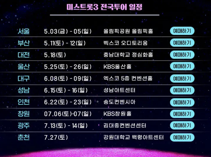 1. 미스트롯3 콘서트 일정
